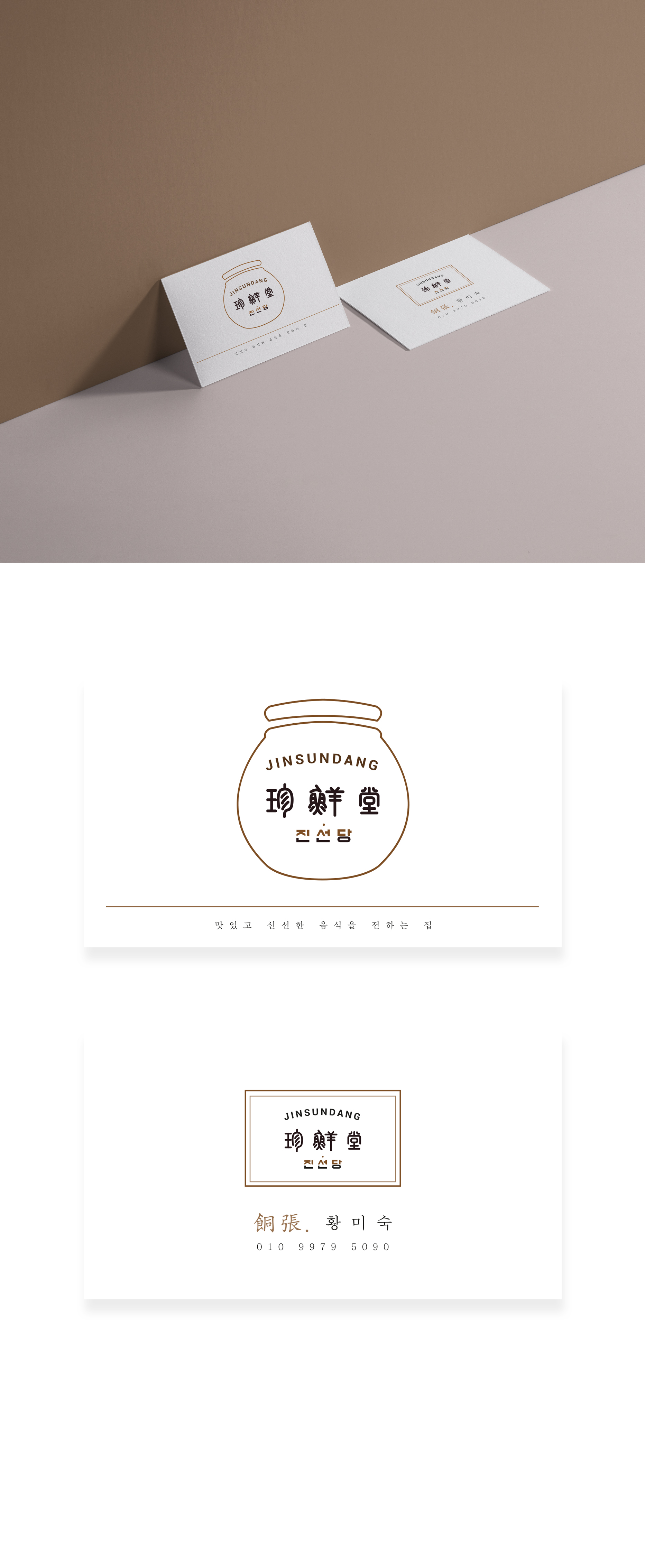 브라운계통을 주조로 얇은 라인으로 장을 담는 장독대의 형태를 로고를 디자인해서 현대화된 한식 컨셉을 나타냈습니다.